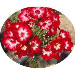 Velmi ztlustlý kmen se sukulentními výhony, oválné kožovité lesklé listy. Plné 5-8cm velké červené květy s tmavými okraji. Velice atraktivní a bohatě kvetoucí sukulentní teplomilná rostlina vhodná na tvorbu bonsai. Expedujeme rostliny: Výška rostliny 6+cm, Ø kmínku 1,5-2cm.