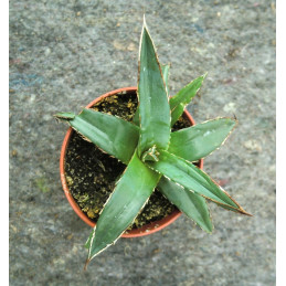 Malá až středně velká Agave, která vytváří kompaktní růžicí tmavě zelených listů s hnědými trny, které se později zbarvují do šedobílé. Fialové-nažloutlé-červené nebo zelené květy, 35-40mm dlouhé. Expedujeme rostliny: Ø květináče 5,5cm.