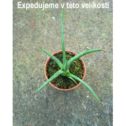 Tato krásná a vzácná odrůda tvoří velmi kompaktní růžici tuhých, špičatých, někdy načervenalých listů s bílými vlákny a skvrnami. Expedujeme rostliny: Ø květináče 5,5cm.