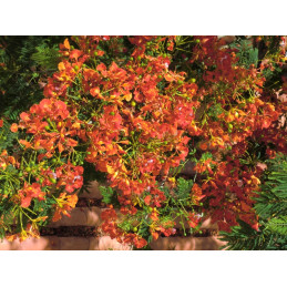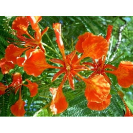 Dekorativní zpeřené listy, ohnivě červené květy až 15cm velké. Vytváří deštníkovitou korunu. Vynikající pro bonsai. Jeden z nejkrásnějších stromů j. Afriky. Expedujeme rostliny: Ø květináče 7cm, výška rostliny 11+cm.