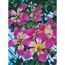 Strom s deštníkovitou korunou s prstovitě dělenými listy a růžovo-žlutými květy. Vytváří ztlustlý kmen. Plody (tobolky) 15cm dlouhé naplněné bílými vlákny. Posvátný strom indiánů Maya. Expedujeme rostliny: Ø květináče 6,5cm.