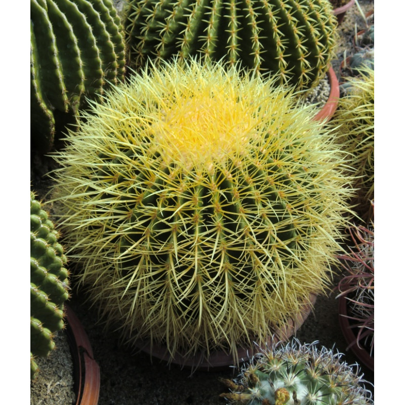 Kaktus "Zlatá koule" vytváří velkou kouli se zlatožlutými trny. Velmi dekorativní, oblíbený, jeden z nejhezčích. Expedujeme rostliny: Ø květináče 5,5cm.