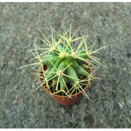 Kulovitý, jasně zelený kaktus. Žluté květy tvoří kruh na temeni. Jeden ze vzácnějších zástupců rodu. Mladé rostliny mají obvykle zlatě zbarvené ostny. Expedujeme rostliny: Ø květináče 5,5cm.
