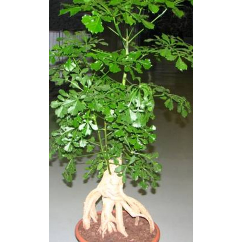 Ztlustlé  zakroucené kořeny vytváří již 1. rokem. Kopinaté dělené listy, nažloutlé květy s červenými skvrnkami. Velmi vhodný na bonsai. Pochází z australského Queenslandu. Každá rostlina je jedinečná a má různě pokroucený kmínek. Expedujeme rostliny: Ø kaudexu /ztlustlého kmínku 1cm.