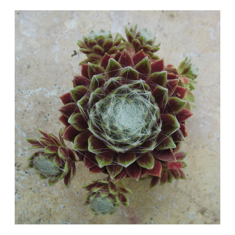 Netřesk pavučinatý. Růžice listů se na slunci zbarvují na rubínově červenou. Listy jsou na koncích pokryty chomáčky chloupků. Mrazuvzdorný a nenáročný na pěstování. Vhodný na skalky, okraje záhonů a do nádob. Expedujeme rostliny: Ø květináče 6,5cm.