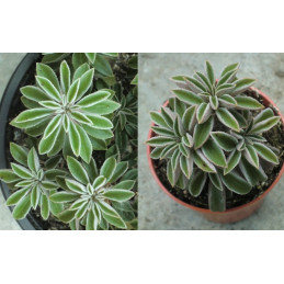 Vytváří stonky s růžicemi zelenožlutých-zlatých listů. Na slunci získává načervenalé odstíny. Hvězdicovité bílé-nažloutlé květy. Expedujeme rostliny: Ø květináče 5,5cm.