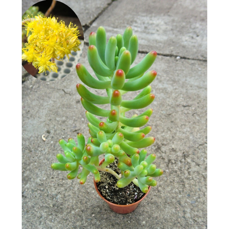 Rozchodník, světle zelené, šedě ojíněné, dužnaté, válcovité listy mají obvykle červené špičky. Expedujeme rostliny: Ø květináče 5,5cm.