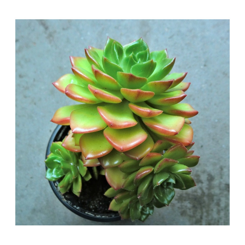 Vzácnější a pomalu sloupovitě rostoucí kříženec dosahuje výšky okolo 15cm. Tělo se skládá z trojúhelníkovitých listů. Kvete drobnými kvítky bílé nebo slabě narůžovělé barvy. Expedujeme rostliny: Výška rostliny 5+cm.