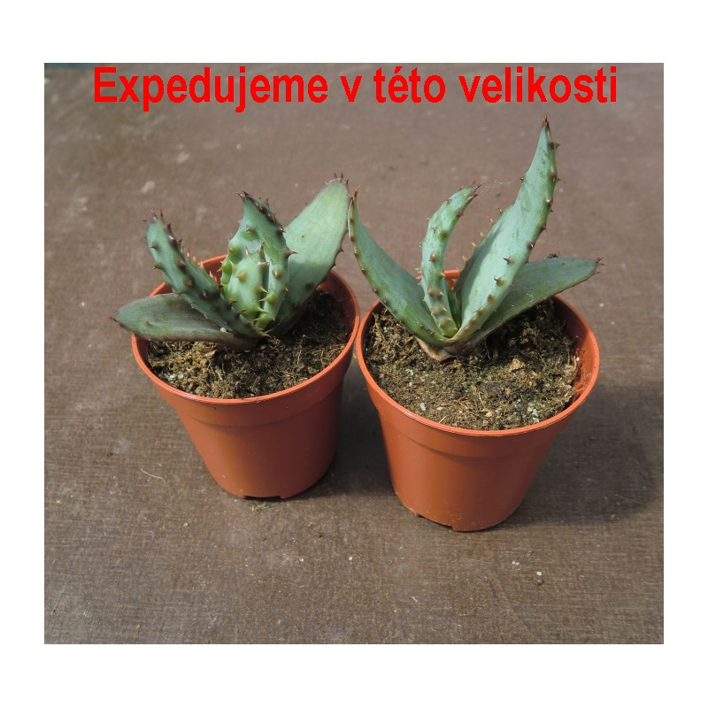 Zakrslá Aloe s malými, spirálovitými růžicemi. Hustě nahloučené, šedozelené listy mají na povrchu nápadnou voskovou vrstvu. a měkké ostny. Lososově růžové - korálově červené trubkovité květy v kuželovitých hroznech. Pochází z JAR (provincie Jižní a Východní Kapsko). Expedujeme rostliny: Ø květináče 5,5cm.