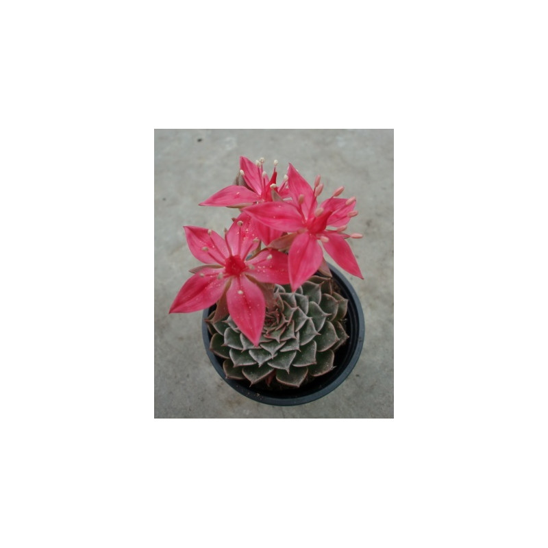Netřesk, odolná sukulentní trvalka. Červené listové růžice jsou ve středu zelené. Vybarvení se později mění v závislosti na ročním období. Růžové květy. Mrazuvzdorný a nenáročný na pěstování. Vhodný na skalky, okraje záhonů a do nádob. Expedujeme rostliny: Ø květináče 6,5cm.