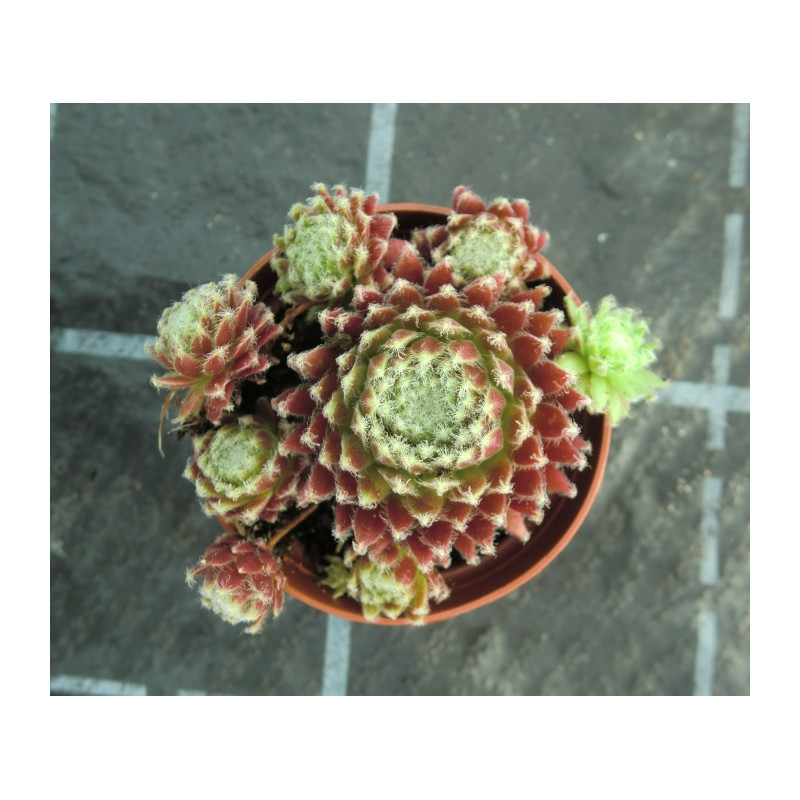 Netřesk pavučinatý. Růžice listů se na slunci zbarvují na rubínově červenou. Listy jsou na koncích pokryty chomáčky chloupků. Mrazuvzdorný a nenáročný na pěstování. Vhodný na skalky, okraje záhonů a do nádob. Expedujeme rostliny: Ø květináče 6,5cm.