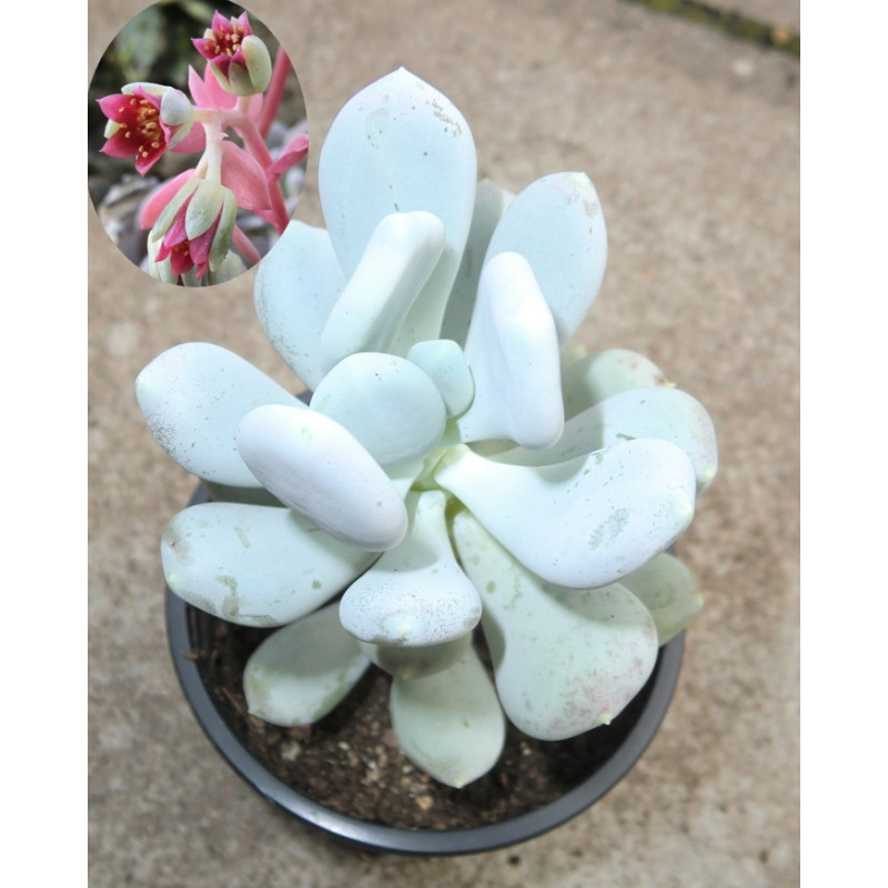 Velmi tučné, podlouhlé, šedomodré listy v růžici. Zvonečkové květy jsou uvnitř červené. Je podobný příbuzné formě P. oviferum. Pochází z Mexika. Expedujeme rostliny: Ø květináče 5,5cm.