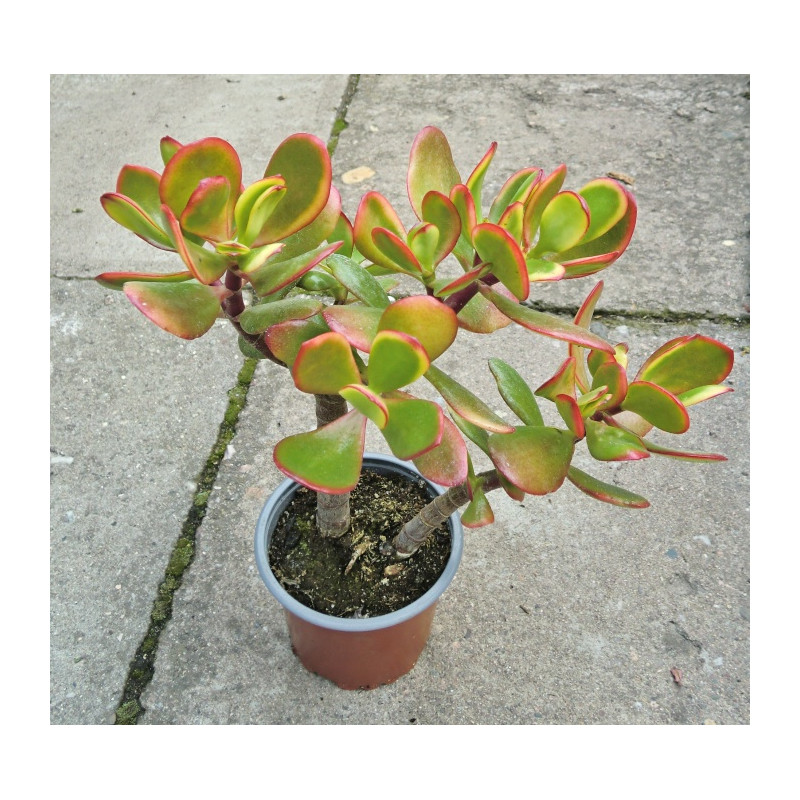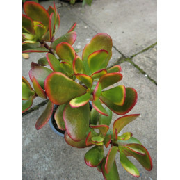 Kapská tlustice keříčkovitého vzrůstu. Zelené listy mají na slunci výrazné, zářivě červené okraje. Drobné bílé květy s červeným středem. Expedujeme rostliny: Ø květináče 5,5cm, keříček.