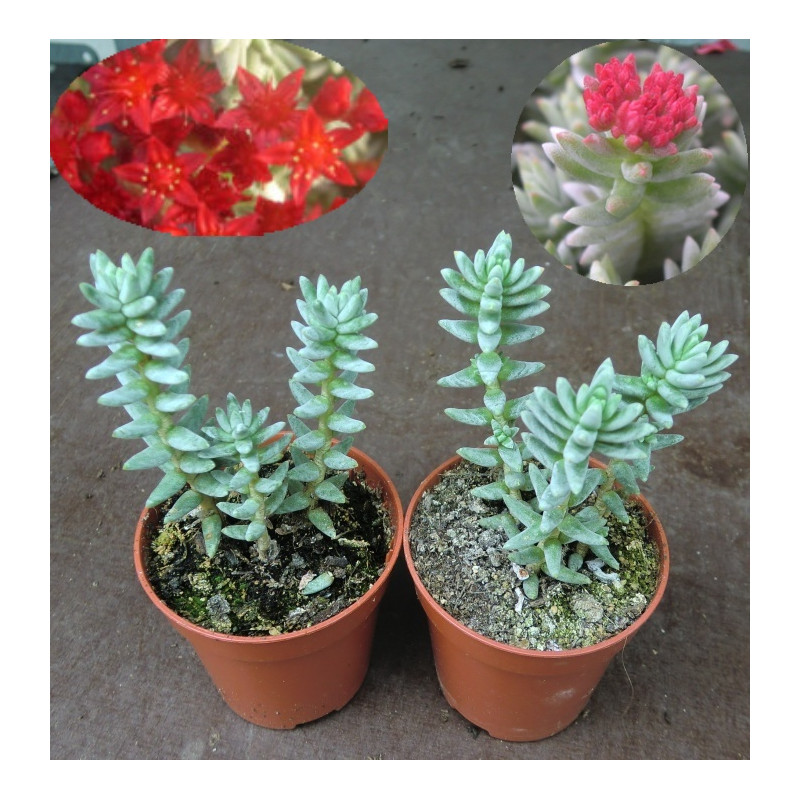 Rozchodník, keřovitý sukulent s šedozelenými listy. Dorůstá do výšky 15 cm. Jasně červené květy v koncových hroznech. Pochází z Mexika. Expedujeme rostliny: Ø květináče 5,5cm.