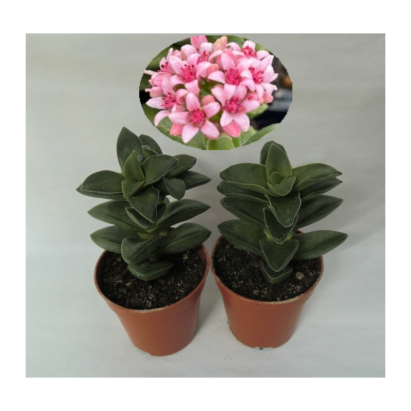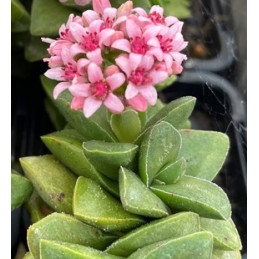 Tlustice, pomaleji rostoucí sukulentní rostlina s menšími, trojúhelníkovými listy v růžicích, které mají šedo zelenou barvu. Listy mohou mít v létě narůžovělé okraje. Husté shluky drobných hvězdicovitých květů na kratších stopkách jsou růžové. Expedujeme rostliny: Ø květináče 5,5cm.