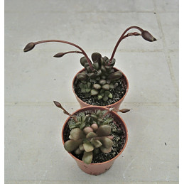 Kolopojka, tučné oválné zubaté listy se na slunci zbarvují do růžova. Podél okrajů listů narůstají miniaturní listové růžičky. Růžovo- fialové zvonkovité květy na dlouhých stvolech. Expedujeme rostliny: Ø květináče 5,5cm.