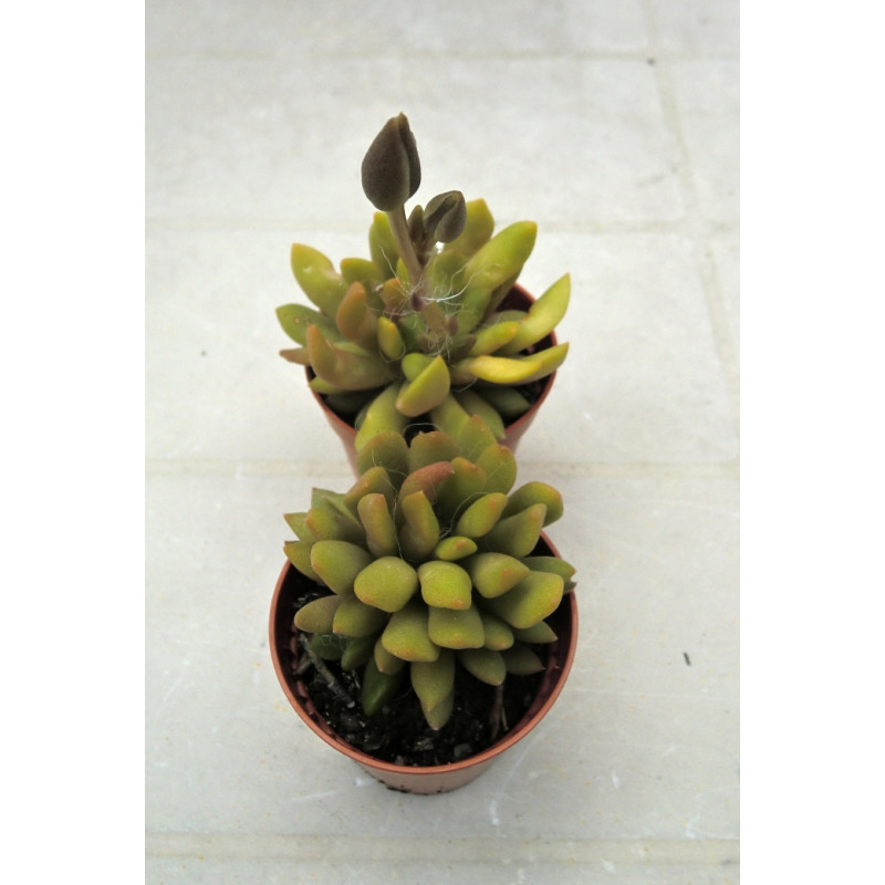 Vytváří malé růžice se zploštělými, protáhlými listy, které jsou pokryté jemnými bílými chloupky. pochází z JAR. Růžové květy. Expedujeme rostliny: Ø květináče 5,5cm.