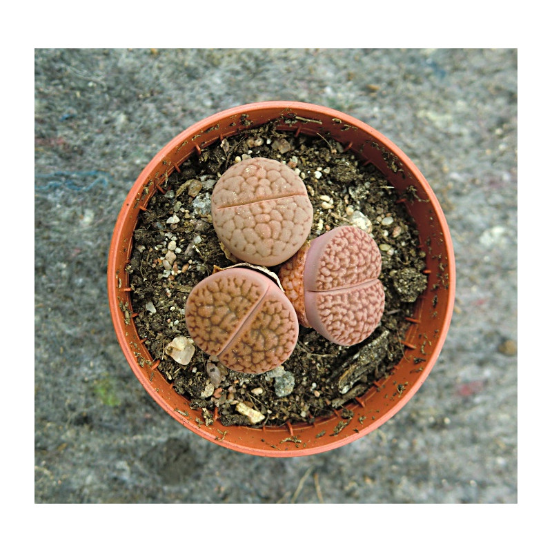 "Živé kameny" jsou původem z J. Afriky. Květy ve žlutých a bílých barvách. Vytváří nízké trsy nebo jednotlivá těla, která jsou různě vybarvena na povrchu s kresbou. Směs sukulentních, suchomilných druhů. Expedujeme rostliny: Ø květináče 5,5cm s 3 kusy.